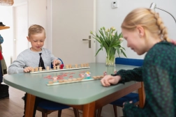 Dette smarte familiespil til børn fra 6 år bygger på at stille spørgsmål og udelukke muligheder. Spil “Hvem er jeg?” i ko-stil – har modstanderens ko en hat eller en sløjfe? Hvis svaret er nej, vend de uhensigtsmæssige små køer ned og fortsæt, indtil den rigtige er tilbage. Vinderen er den, der først gætter modstanderens ko præcist.
