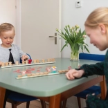 Robuste træstativer og farverige figurer styrker finmotorikken og tåler hyppig leg.