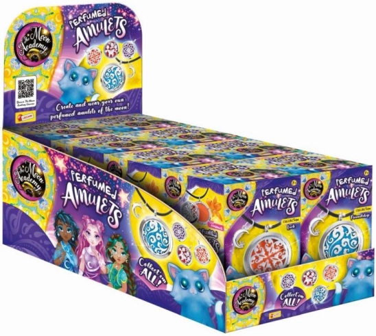 Træd ind i Moon Academy og lav dine egne duftende amuletter, som du kan have med overalt. Det sjove kreative sæt til børn udvikler fantasi og finmotorik og lader børn lave deres helt eget unikke vedhæng med duft. Forskellige samletemaer og figurer giver amuletterne charme og personlighed.