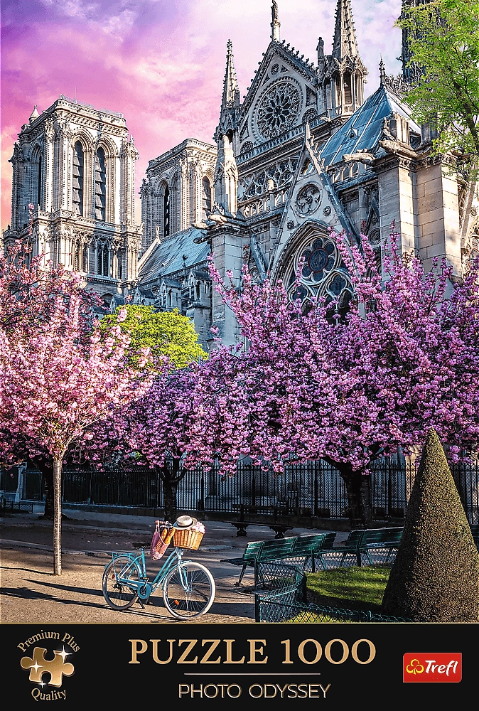 Oplev Paris’ skønhed med motivet af Notre‑Dame‑katedralen indfanget i de blide farver fra forårets kirsebærblomster. Puslespillet med 1000 brikker udmærker sig ved skarp trykkvalitet og naturtro detaljer, så du kan nyde lægningen fra første til sidste brik. Det færdige billede måler 48 × 68,3 cm og egner sig glimrende til indramning.