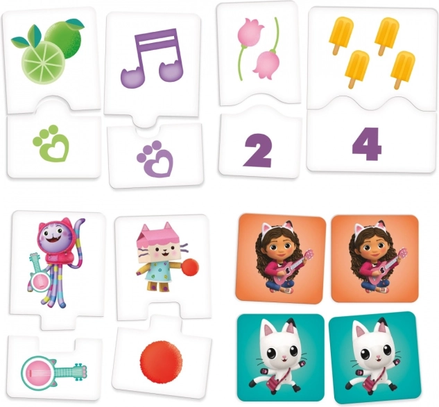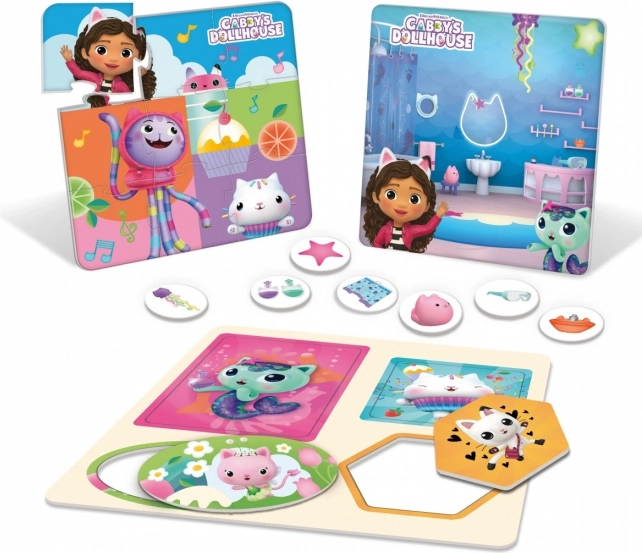 Temaplader og illustrationer fra Gabby's magiske hus motiverer børn til at udforske tal, genstande og enkle spilleregler.