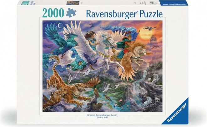 Oplev magien ved RAVENSBURGER-puslespil med motiv af en fantastisk pegasus i et sæt med 2000 brikker. Præcis SoftClick-teknologi, premiumkarton med linnedstruktur mod genskin og miljøvenlige materialer sikrer en perfekt oplevelse i hver brik og et smukt slutmotiv.