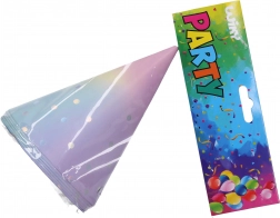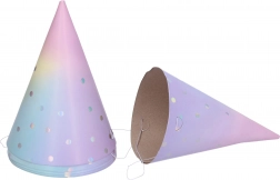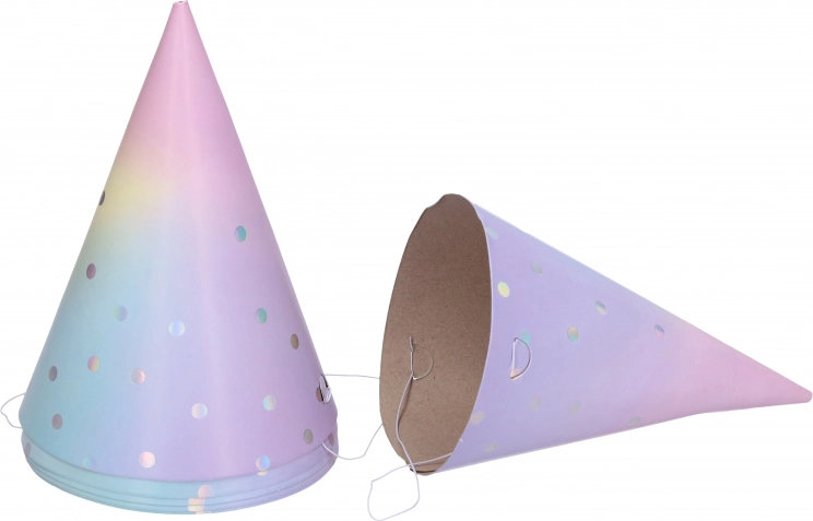 Vores pastelfarvede partyhatte vil bringe glæde og leg til din fest. Hver pakke indeholder seks stykker i størrelsen 15 cm, hvilket er en ideel størrelse til både børn og voksne. Hattene er lavet af kvalitets papir, som er let og behageligt at bære. Med deres pastelfarvede design passer de til forskellige temafester og giver dem en unik atmosfære.