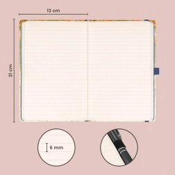 Linjerede sider på gult papir sikrer behagelig læsning og skrivning uden at anstrenge øjnene. Med 172 sider har du rigelig plads til dine tanker, opgaver og kreative idéer – fra personlig dagbog til arbejdsmøder.