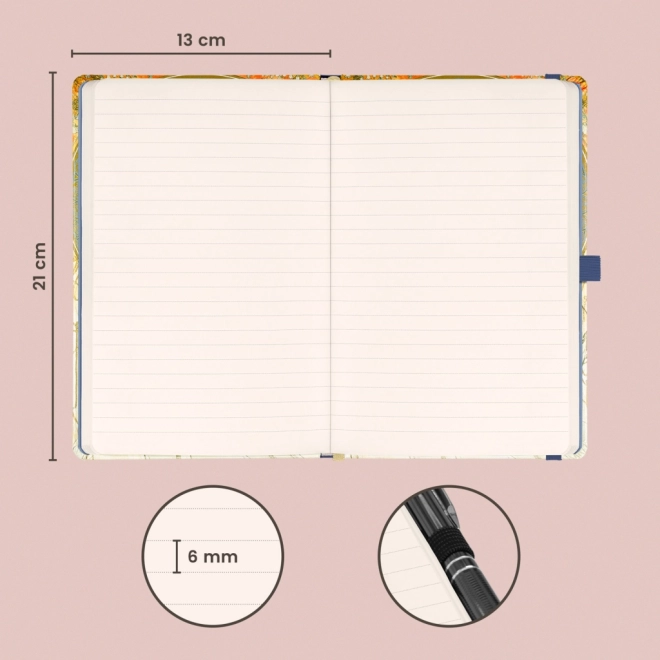 Den stilfulde NOTIQUE notesbog med det kunstneriske motiv Alfons Mucha – Musik er et perfekt valg til hverdagsbrug. De hårde omslag beskytter indholdet, elastikken holder alting samlet, og takket være penneholderen har du altid en pen ved hånden. Den praktiske indvendige lomme rummer visitkort, klistermærker og små dokumenter.