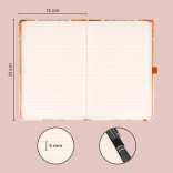 - Praktiske elementer: elastisk rem, penneholder, indre lomme