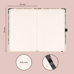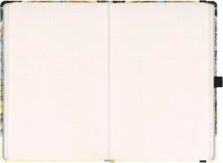 Stilet notesbog med det ikoniske jugendmotiv Alfons Mucha – Zodiac kombinerer tidløst design og gennemtænkte detaljer. Det prikkede sideopslag er perfekt til bullet journaling, skitser, noter og opgaveplanlægning.