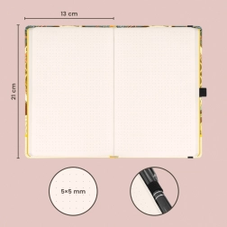 Stilfuld notesbog med det ikoniske motiv Alfons Mucha – Pen er en praktisk ledsager til daglig skrivning og kreativt arbejde. De hårde omslag beskytter indholdet, og det prikkede papir gør det nemt at tegne skemaer, skitser og overskuelige noter.