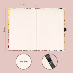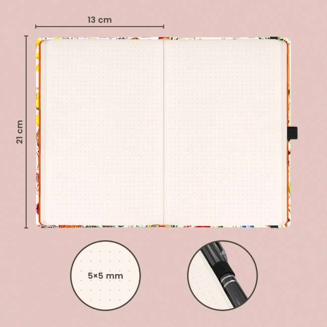 Denne stilfulde notesbog fra Kateřina Winterovás kollektion udmærker sig med hårde omslag med blomsterillustrationer og gennemtænkte detaljer for komfortabel daglig brug. Takket være det prikkede grid er den perfekt til bullet journal, tegning, skitsering og opgavestyring.