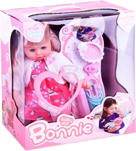 Når man trykker på maven eller hænderne, afgiver dukken forskellige lyde: latter, gråd, bablen, “mor”, “far”, drikke fra flaske samt bøvsen. Det giver børn en mere autentisk oplevelse af at passe en baby.
