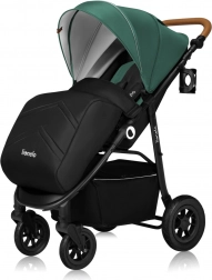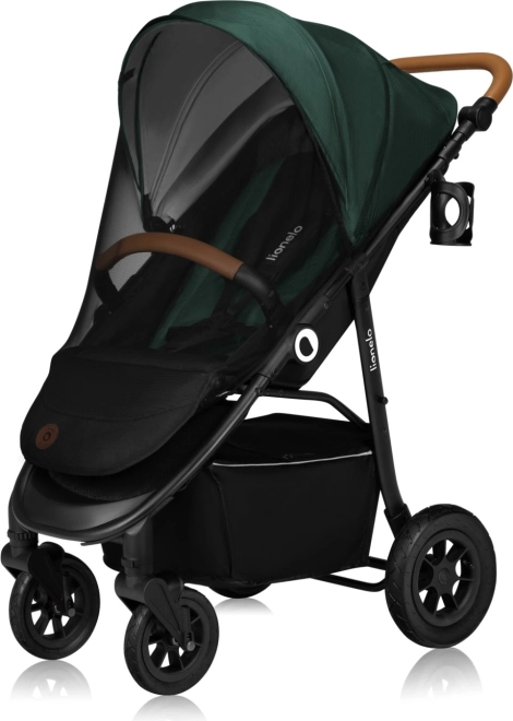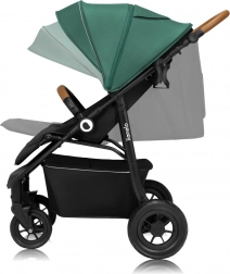 Den lette og adrætte sportsklapvogn LIONelo Natt i farven Green Emerald tilbyder komfortabel kørsel både i terræn og i byen takket være oppustelige hjul med dybt mønster, et drejeligt forhjul 360° med lås og en fodbremse. Barnet får maksimal komfort med et justerbart ryglæn helt ned i liggestilling, justerbar fodstøtte og en XXL kaleche med UPF 50+. Forældre vil sætte pris på håndtag med 11 justeringsniveauer, en rummelig kurv med lynlås og rigt tilbehør inkl. fodbetræk, myggenet og flaskeholder.