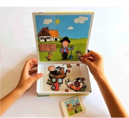 Dette smarte sæt kombinerer skrivning, viskning og samling af magnetiske billeder i ét kompakt spil. Børn kan øve bogstaver og tal, tegne med en tørvisker-tusch og skabe deres egne gårdscener. Takket være magneterne sidder delene godt fast på pladen, hvilket gør den ideel både i bilen og derhjemme.