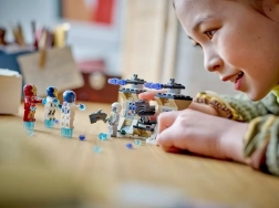 Den befæstede HYDRA-base har en drejelig gulvplade med 2 skydere, og på tårnene finder du ikke-fungerende raketkastere for et autentisk look. IRON MAN-minifiguren har åbent visir og repulsor, HYDRA-soldaten har en skyder. LEGO Builder-appen tilføjer interaktive vejledninger og 3D-forhåndsvisninger.