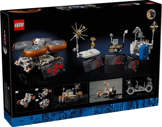 Byg det ikoniske månekøretøj LRV, og genoplev højdepunkterne fra NASA Apollo 17-missionen. Modellen er gennemtænkt ned til sidste detalje: fra sæder og instrumenter til batterisystem med varme og køling samt tv-kamera med antenner og kommunikationsmodul. Tre ekstra udstyrssæt monteres direkte på roveren og udstyrer den med autentiske videnskabelige værktøjer.