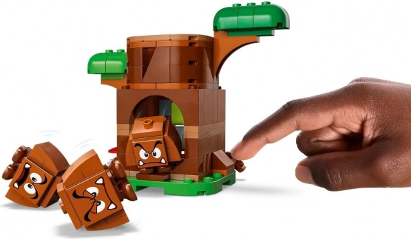 Nyd at bygge og lege med det samlende sæt LEGO Super Mario Goombas Legeplads, som inkluderer 173 dele. Byg en træstamme med en gynge, hvor Goomberne kan optræde. Når du trykker på bjælken bag på træet, vil Goomba flyve, og du kan skabe din egen Goomba-tårn med figurerne.