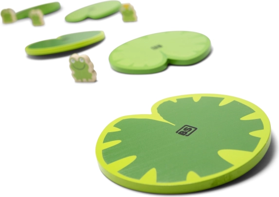 Spillet er til 1–4 spillere fra 3 år. Opgaven er sikkert at hoppe over alle åkandebladene til enden og samle frøerne undervejs – men pas på, stien er vaklende! Takket være den fleksible placering af elementerne kan sværhedsgraden nemt justeres, så både begyndere og små akrobater kan være med.