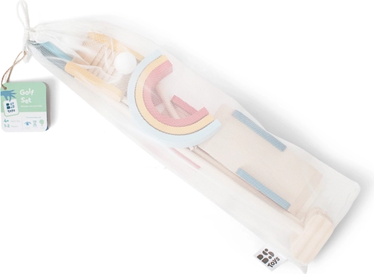 Pakken indeholder to holdbare golfkøller, to lette bolde og syv kreative forhindringer, så I kan bygge jeres egen minigolfbane. Sættet er ideelt til haven, parken og børnefødselsdage – en fantastisk måde at bruge tiden uden telefoner og tablets.
