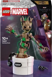 LEGO Marvel Dansende GROOT (76297) er et originalt byggesæt, der kombinerer kreativt byggeri med en interaktiv dansefunktion. Drej håndtaget på bagsiden af urtepotten og se GROOT danse. Takket være det artikulerede hoved og de bevægelige arme kan figuren nemt stilles i forskellige positurer og skabe sjove scener fra MARVEL-universet.
