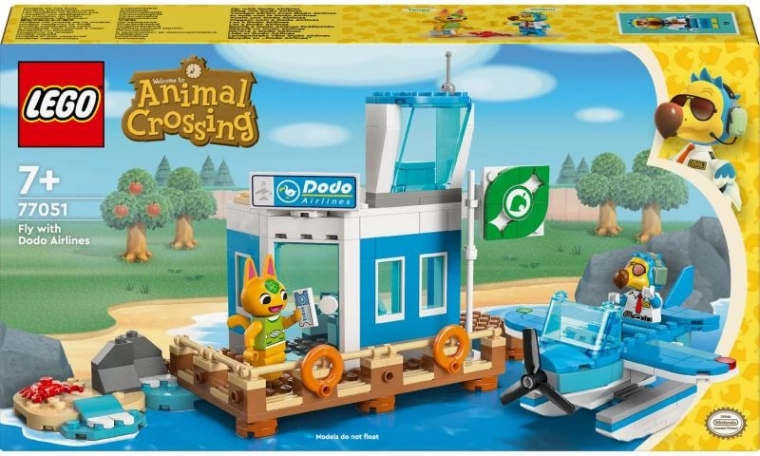 Tag børn med på ø-eventyr med LEGO Animal Crossing Dodo Airlines Lufthavn (77051). Sættet bringer yndlingselementer fra spillet – en havnemole, et kontroltårn, en strand og den legendariske orange port – samt et detaljeret vandfly med åbningsbar cockpit og funktionsdygtig propel. To ikoniske minifigurer, piloten Wilbur og passageren Tangy, inviterer til endeløs leg og skabelse af egne historier.