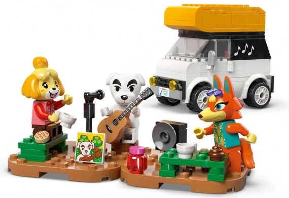 Bring ikoniske øjeblikke fra ANIMAL CROSSING til live. Børn bygger et torv med klokketårn, café og rådhus, gør scenen klar til K.K., laver fælles udstræk med Isabelle og nyder noget lækkert i caféen med Audie. Campingvognen kan åbnes, så K.K. kan overnatte, og træet gemmer på en overraskelse – præcis som i spillet.