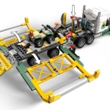 - Lastbil med førerhus til 3 minifigurer, trailer med bur og rampe, quad, drone