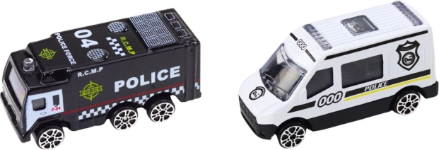 Pakken indeholder 2 politibiler 1:64 og 7 trafikskilte, så børn nemt kan skabe egne scenarier, lære grundlæggende færdselsregler og udvikle fantasi og finmotorik. Sættet er egnet til børn fra 3 år og opfylder sikkerhedsstandarderne CE og EN71.