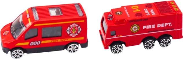 Der medfølger 2 brandbiler i skala 1:64 og 7 trafikskilte. Børn lærer færdselsprincipperne naturligt og udvikler fantasien.