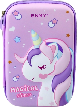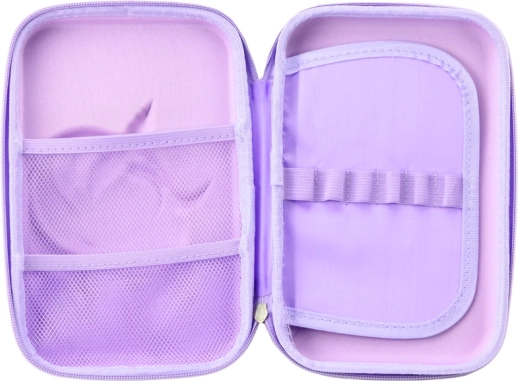 Stilfuldt og praktisk penalhus med 3D-enhjørningemotiv, der vil glæde enhver skolepige. Det er lavet af et holdbart, forstærket materiale, som er vandafvisende og tåler daglig brug. Den foldbare konstruktion giver et overskueligt layout takket være to netlommer og seks holdere til blyanter eller farveblyanter.