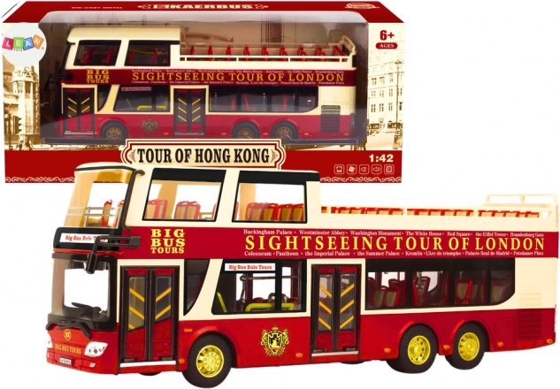 Dobbeltdækker sightseeingbus i skala 1:42 er ikke kun et fantastisk legetøj, men også et fremragende samleobjekt. Dens omhyggelige udførelse og fokus på detaljer vil fascinere både børn og voksne bilentusiaster. Bussen drives af tre AG13-batterier, som er inkluderet i pakken.