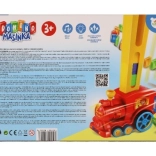 Toget opstiller selv de farvede klodser i en lang række under kørslen. Børn får glæde af en glidende og hurtig forberedelse til store dominokaskader.