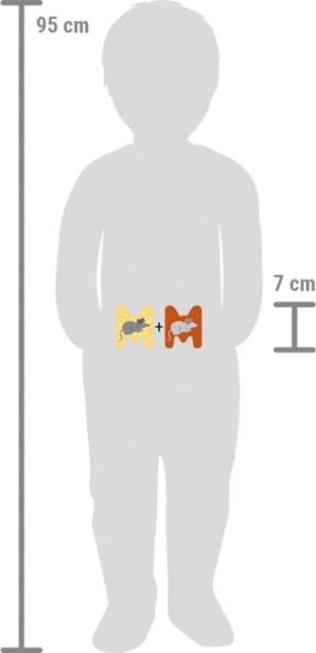 Det muntre musemotiv og de blide pastelfarver understøtter en legende atmosfære og finmotorik under brug. To farveudgaver gør det muligt at matche bogstavet med indretningen eller andre bogstaver fra samme kollektion.