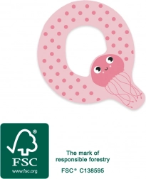 Træbogstav Q med et muntert design af vandmand er den ideelle tilføjelse til ethvert børneværelse og læringsværktøj til at stave ord. Lavet af FSC-certificeret træ, der sikrer en bæredygtig kilde.