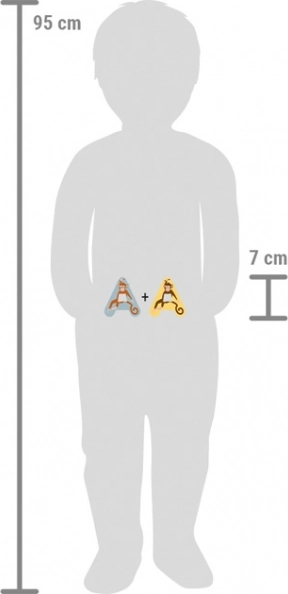 Oplev træbogstavet A, som perfekt supplerer interiøret i ethvert børneværelse. Disse bogstaver er designet med sikkerhed og æstetik i tankerne, med venlige afrundede kanter og et glædeligt pasteldesign med abetema.
