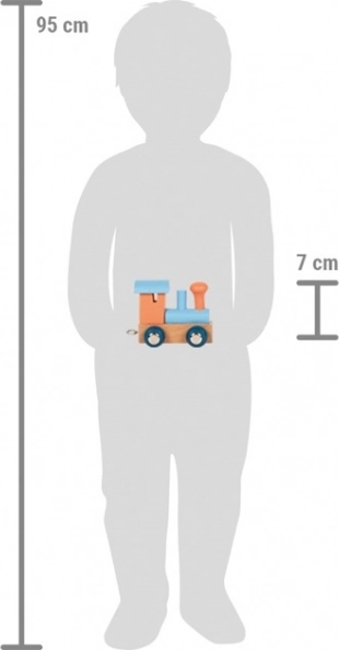 Lokomotiven fra Small Foot udmærker sig ved sit moderne design i orange-blå, som flot kompletterer kollektionen af polart bogstavtog. Legetøjet er fremstillet med fokus på at støtte børns fantasi, smidighed og koordination.