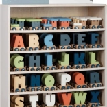 Sjov med polare bogstaver! Sæt tog-bogstaver sammen til ord eller navne med moderne farver og naturligt træ. Ideel til børn som dekoration på børneværelset.