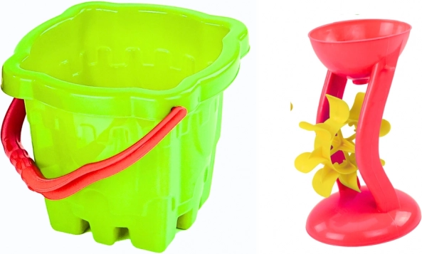 Den stabile spand fungerer som form og som praktisk beholder til vand eller sand – ideel til modellering af slotmure og tårne.