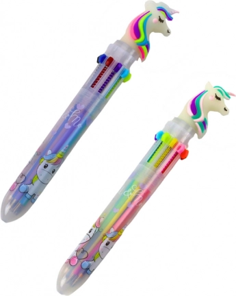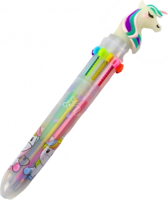 Denne flerfarvede kuglepen med et sødt enhjørningemotiv kombinerer legende udseende og praktisk funktion. Med ét klik vælger du blandt 10 forskellige blækfarver, så du altid har alt, hvad du behøver til at skrive, understrege og tegne lige ved hånden.