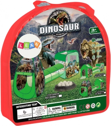 Sjov 3-i-1-sammensætning for fantasifuld leg: rummeligt hustelt, lang tunnel og tør boldpool med kurv i et attraktivt dinosaurmotiv. Nem at samle, lavet af holdbart syntetisk materiale, velegnet til inde og ude og har CE- og EN71-certificering. Ideel til børn fra 3 år.