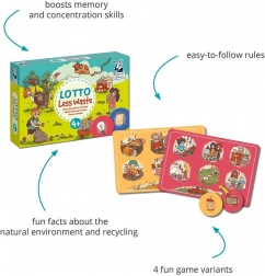 Giv affald nyt liv, og lær børn, hvad der hører til i plast, papir, glas, bioaffald og elektronikaffald. Spillet Captain Smart lotto – ren planet er enkelt og sjovt for 1–6 spillere fra 4 år, med nuttede illustrationer og fire sværhedsgrader. Opgaven er at tilknytte jetoner til de rigtige pladser på spillepladerne, mens I kan tale om billederne og naturligt udvide ordforrådet.