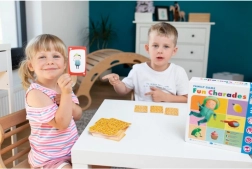 Familiepartyspil for 2 eller flere spillere fra 3 år, hvor I beskriver, optræder, tegner eller efterligner lyde. Med op til 110 billedkort forsøger I hurtigst og sjovest muligt at formidle betydningen til de andre. Spillet udvikler fantasi, kreativitet, logisk tænkning og finmotorik og er et godt alternativ til skærme.