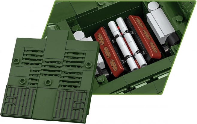 Tårnet er drejeligt, kanonløbet kan hæves og sænkes, og bæltedriften roterer ved bevægelse af modellen. Under det aftagelige tårn finder du en gengivelse af interiøret, og under serviceklappen kan der placeres en model af W-11-motoren. Præcise tryk på periskoper og andre detaljer understreger autenticiteten. Byggesættet er fuldt kompatibelt med andre mærker af klodser.