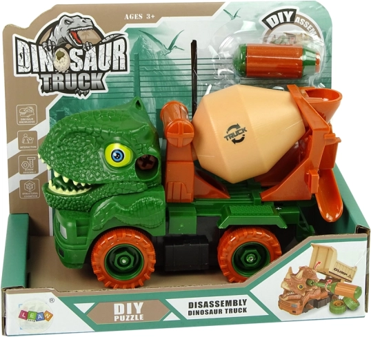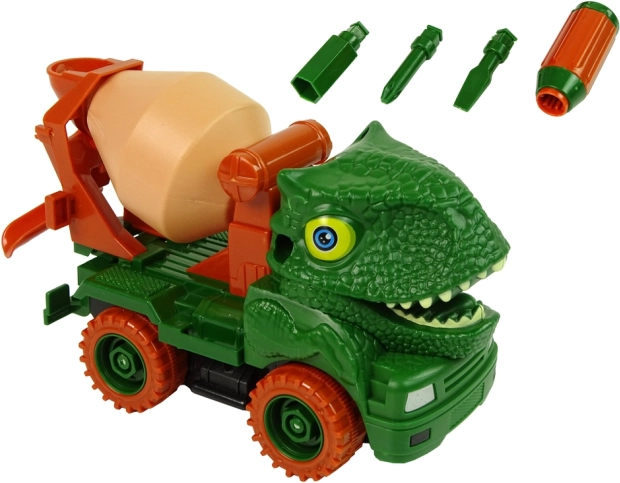 Dinosaur-lastbil betonblander til at skille ad – grøn med tilbehør