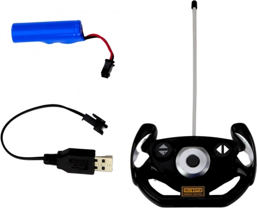 Fjernbetjening i form af et rat med knapper og en metalantenne for bedre manøvreringsevne af legetøjet.
