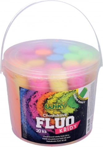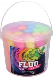 Sæt indeholder 20 stk fluorescerende kridt i en praktisk spand.