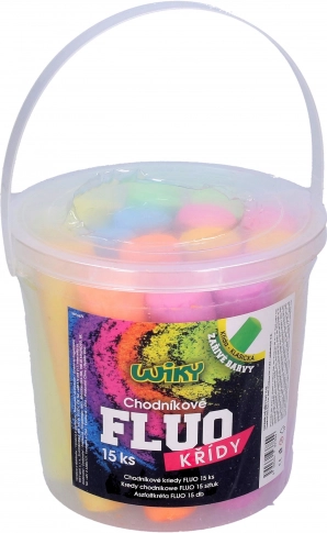 Sjov tegning på fortov og tavle med sættet af FLUO fortovskridt i en praktisk spand. Pakken med 15 stk. byder på strålende neonfarver med klassisk spids for let og præcis tegning.