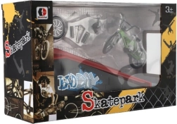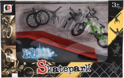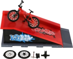 Dette fingercykel-sæt med rampe bringer en kompakt skatepark direkte til dit bord. Mini-BMX med udskiftelige dele er ideel til at træne tricks, hop og præcise landinger. Takket være de skruede dele kan du nemt tilpasse cyklen og lære grundlæggende mini-service – fra hjulskift til pegs.