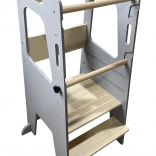 Læringstårnet er et multifunktionelt og praktisk møbel, der understøtter selvstændighed og motoriske færdigheder hos børn. Takket være den smarte form og rækværket rundt om ståfladen føler barnet sig stabilt og sikkert, mens forælderen har konstant opsyn. Tårnet kan nemt skrues fast til køkkenbordet eller arbejdsfladen, så det altid står solidt op mod den faste overflade foran trinnet.
