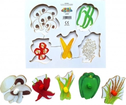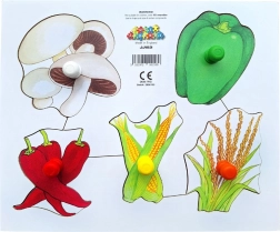 Puslespillet indeholder farverige illustrationer af grøntsager, som hjælper børn med hurtigt at genkende deres former og farver.
