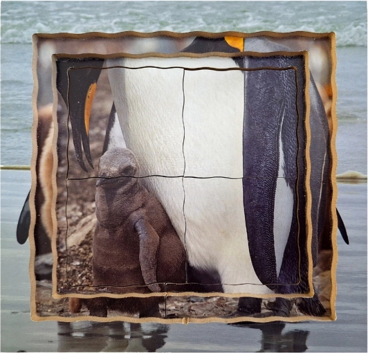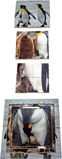 Lærerigt og underholdende: Dette lagdelte træpuslespil indeholder realistiske fotos, som visuelt introducerer børn til de enkelte stadier i pingvinens liv.