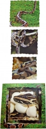 Oplev naturens forunderlige forvandlinger gennem smukke lag-på-lag puslespil. Dette læringssæt viser billeder af fire nøglefaser i slangens livscyklus: